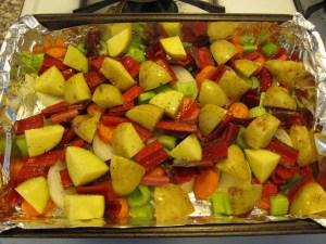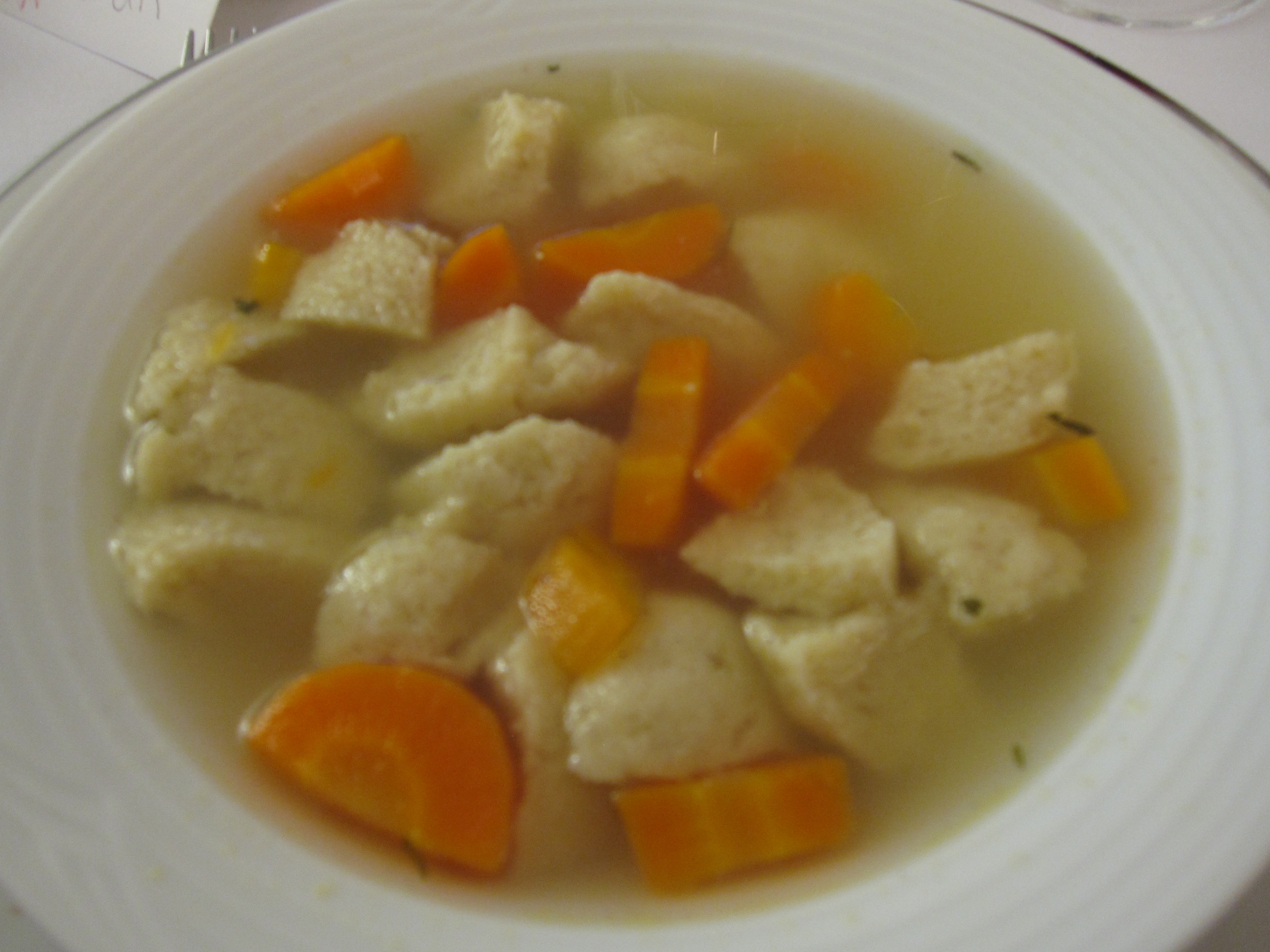 Next is the Matzah Ball Soup. I had two matzah balls, but had already cut them up into bite sized pieces when I remembered that I needed to take a photo. I also forgot to take a pic of the matzah, but that isn’t the end of the world. I do have to say that my Matzah Ball Soup is far superior, but that’s always the case.
