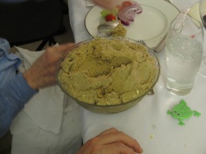 Here’s Grandma’s chopped chicken liver. Unfortunately it’s the only thing she makes anymore. She cooks up the livers, seasons them, and mashes it all down. My cousin Lorrie has to salt it though. Grandma’s taste buds aren’t quite what they used to be. But hey, she’s 86! She gets a pass.