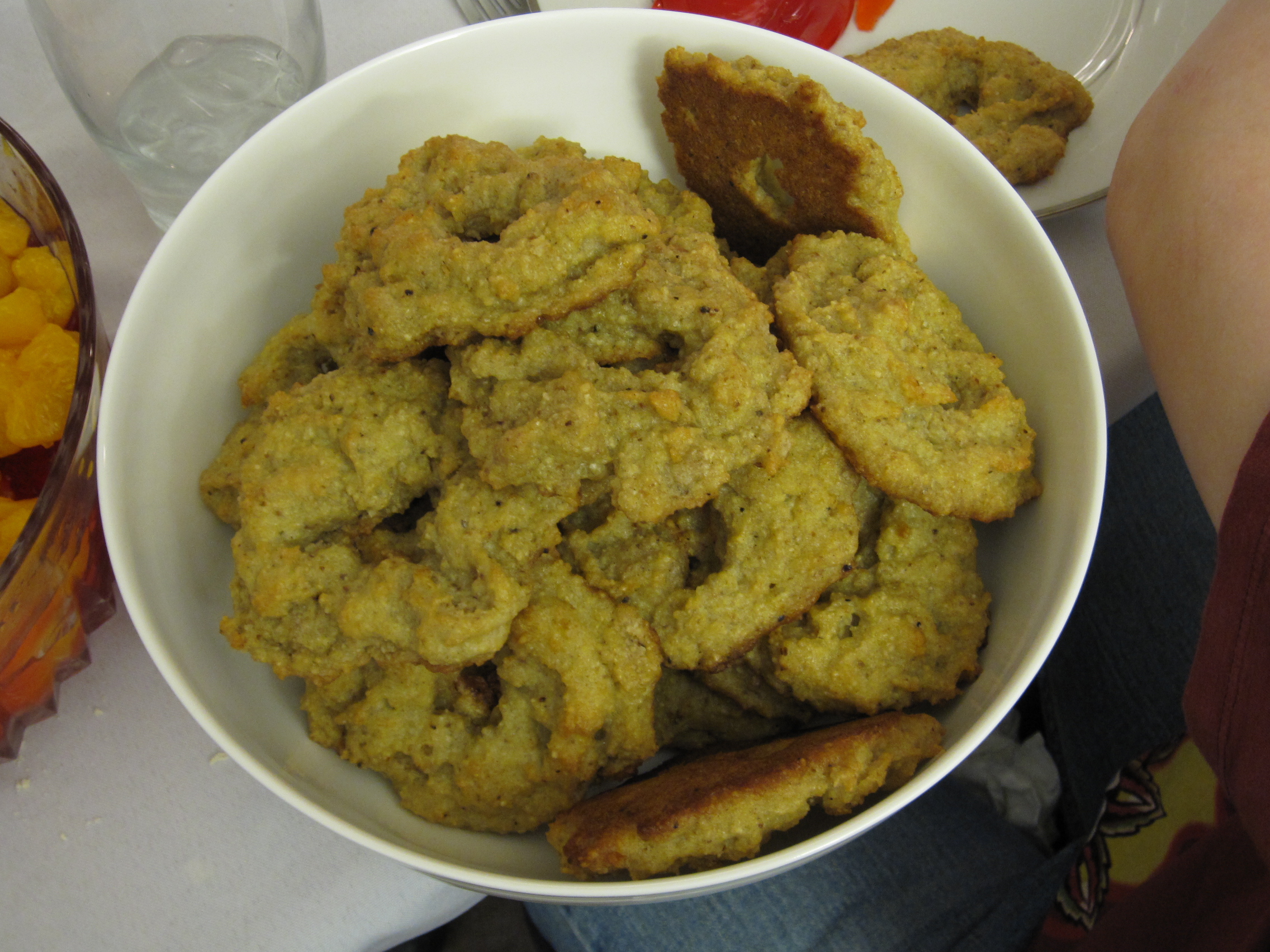 Some bagels made out of matzah meal. They resemble bagels in shape only, but they aren’t bad.