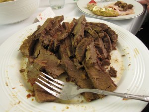 Here’s the famous slow-braised Passover Brisket. Brisket is to Passover what turkey is to Thanksgiving. Again though, my brisket is better. I made the brisket last year, but not this year. I need to take charge of it again for the betterment of all our digestion.