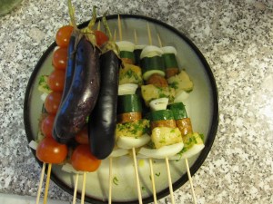 All I did to the salmon was rub some olive oil over the flesh, then salt and pepper. I grilled it to get the skin crisp.