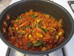 I had a zucchini in my fridge from the day before, so I chopped that up and added it along with a half cup of Israeli couscous that was sitting in my cabinet. Then I let the soup simmer for another 10 minutes.