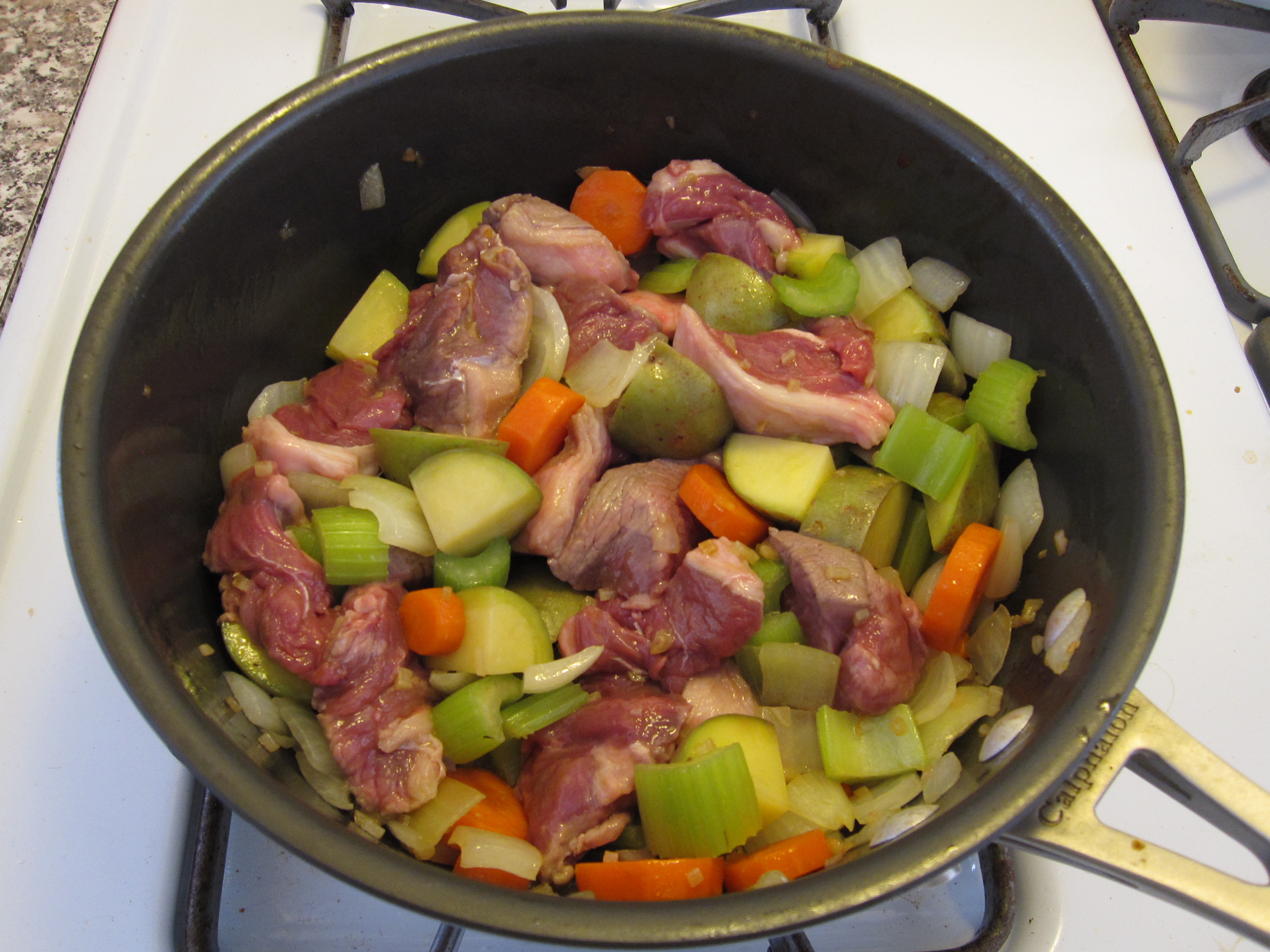 Once that all got to a slight boil I threw in five 5-6 inch Japanese Eggplants that were cut into chunks. Then I turned the heat down to medium-low, covered it, and let it stew for about 15 minutes.