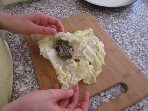 We picked up some really nice Kurobuta (Berkshire) sidebelly while at Mitsuwa. It came thinly sliced which is prefered for this dish. It doesn’t necessarily have to be thinly sliced, nor does it have to be belly. You could get some nice chops and cut them thinly yourself, just try to make them no thicker than about 1/8 inch. I cut the pork sliced in half since they were as long as bacon. That wasn’t necessary, just what I felt like doing.