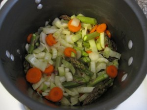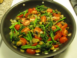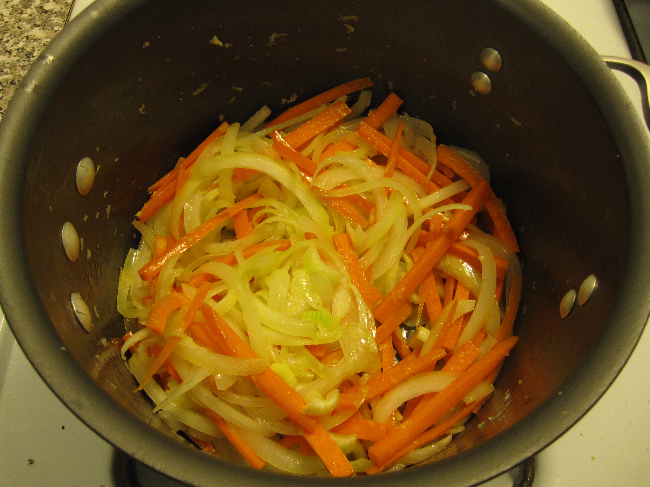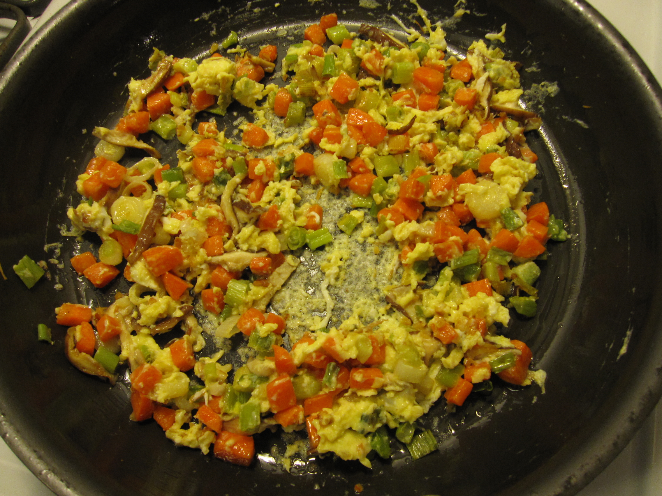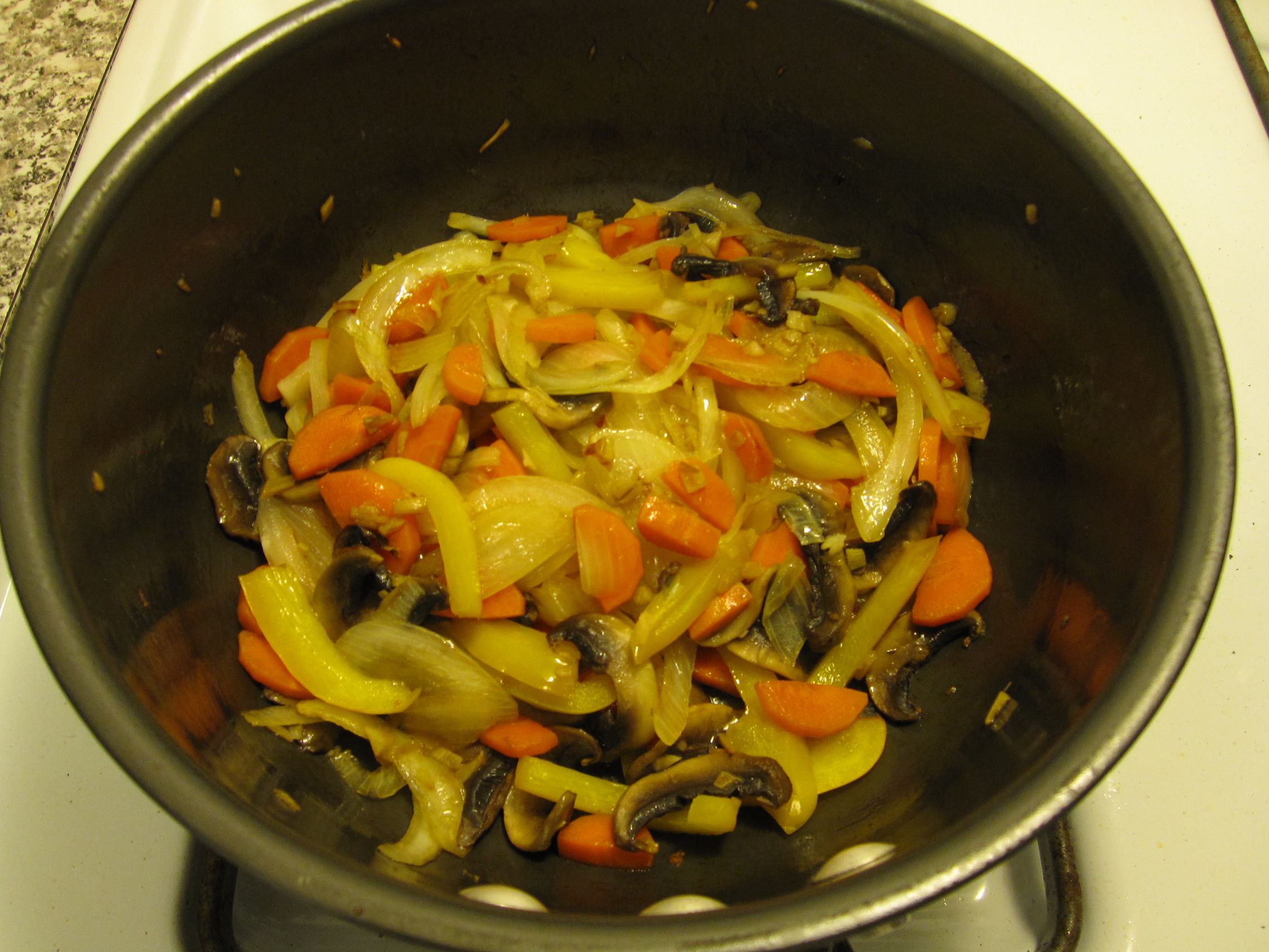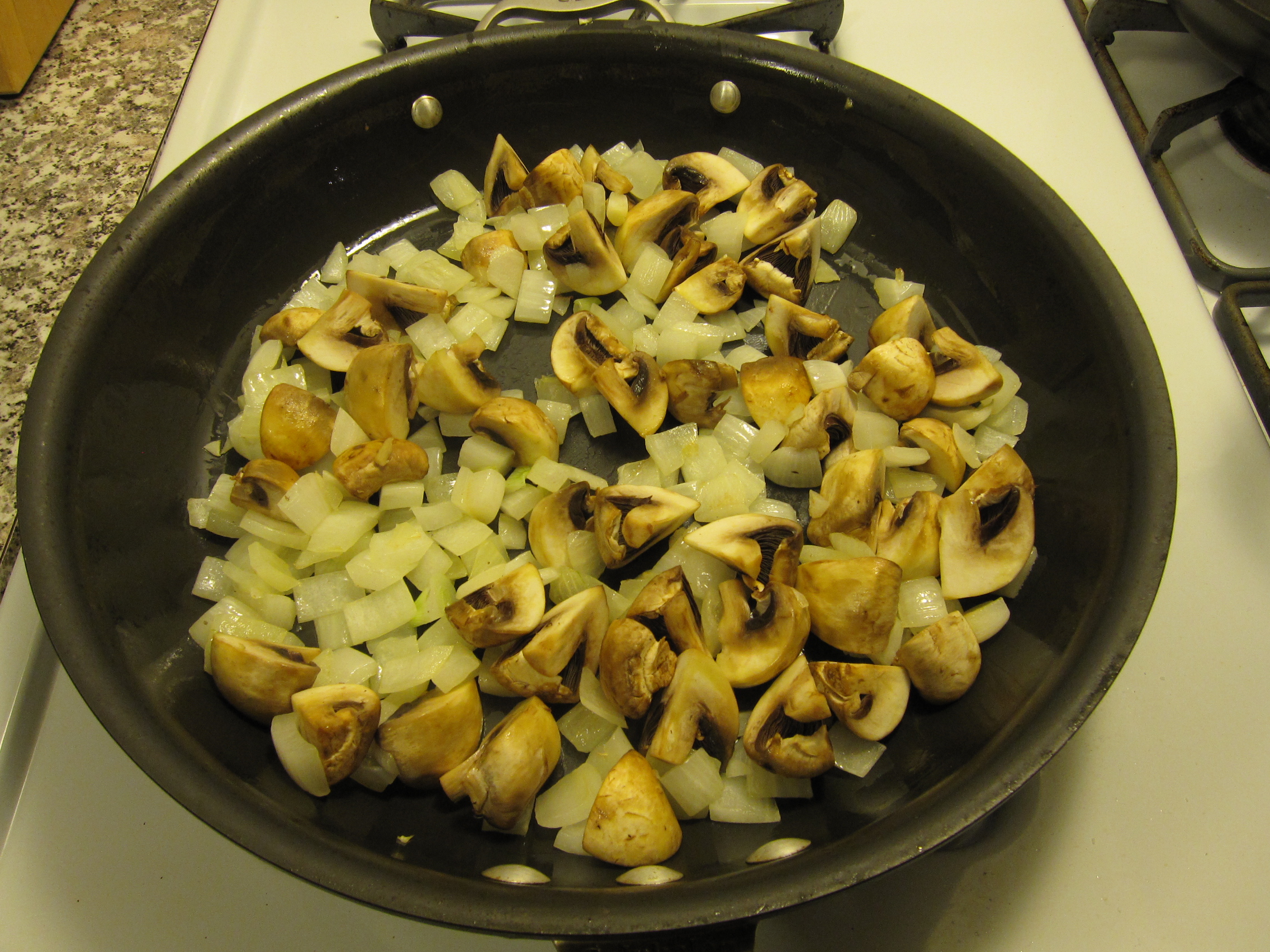 Then I added the onions for a few minutes. Followed by the carrot for a few minutes. Then the pepper for a few more minutes. And finally the mushrooms for another few minutes.