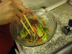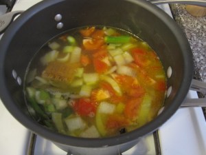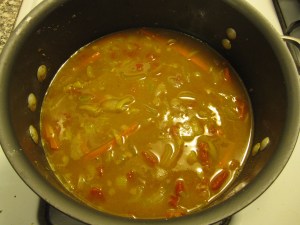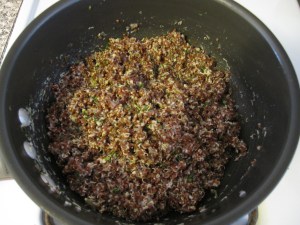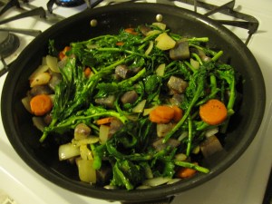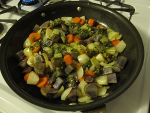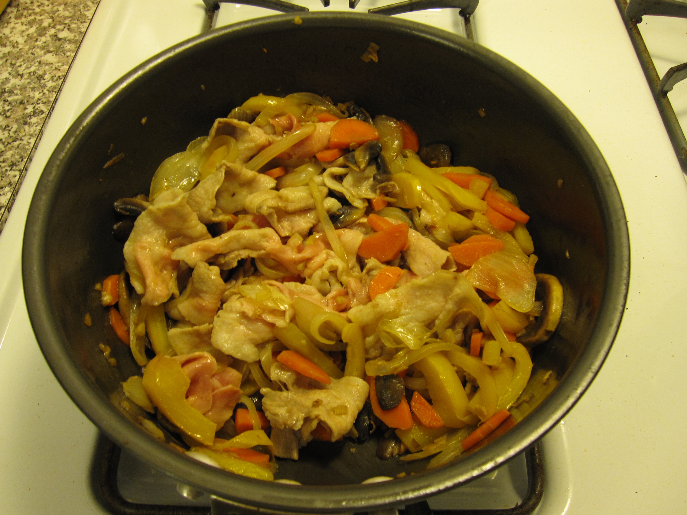 Once the vegetables were mostly cooked I added the pork. I mixed it all together and let it go for, you guessed it, a few minutes.