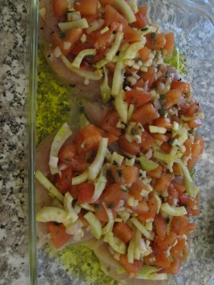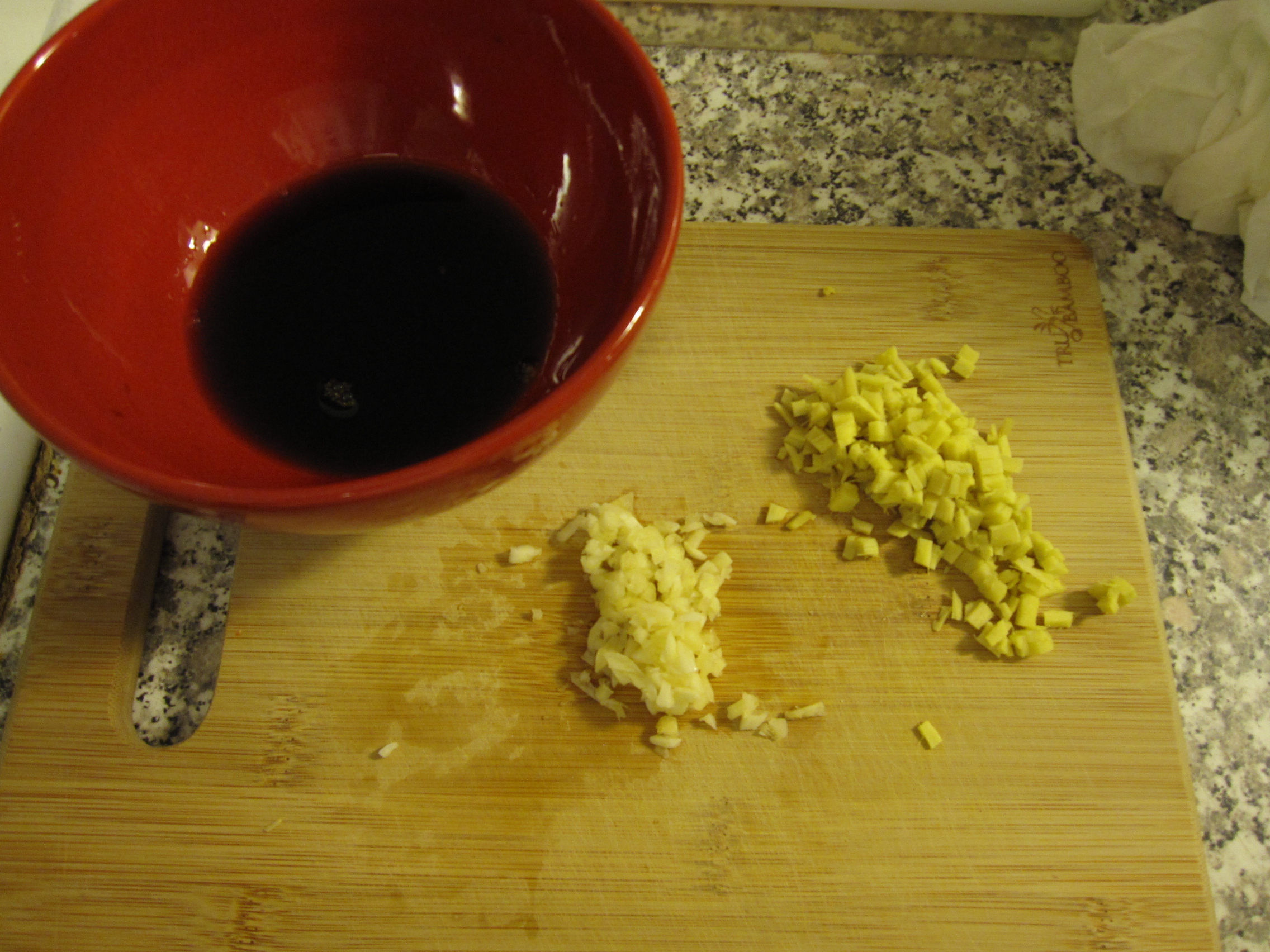 For flavorings I, obviously from the title, used some minced ginger, a couple of minced garlic cloves, and a sauce of 3 tablespoons soy, 2 tablespoons sake, and 1 tablespoon mirin.