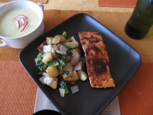 Our last dish was silken tofu steamed with shrimp. It was topped with cilantro and swimming in a soy and broth soup. It was really good.