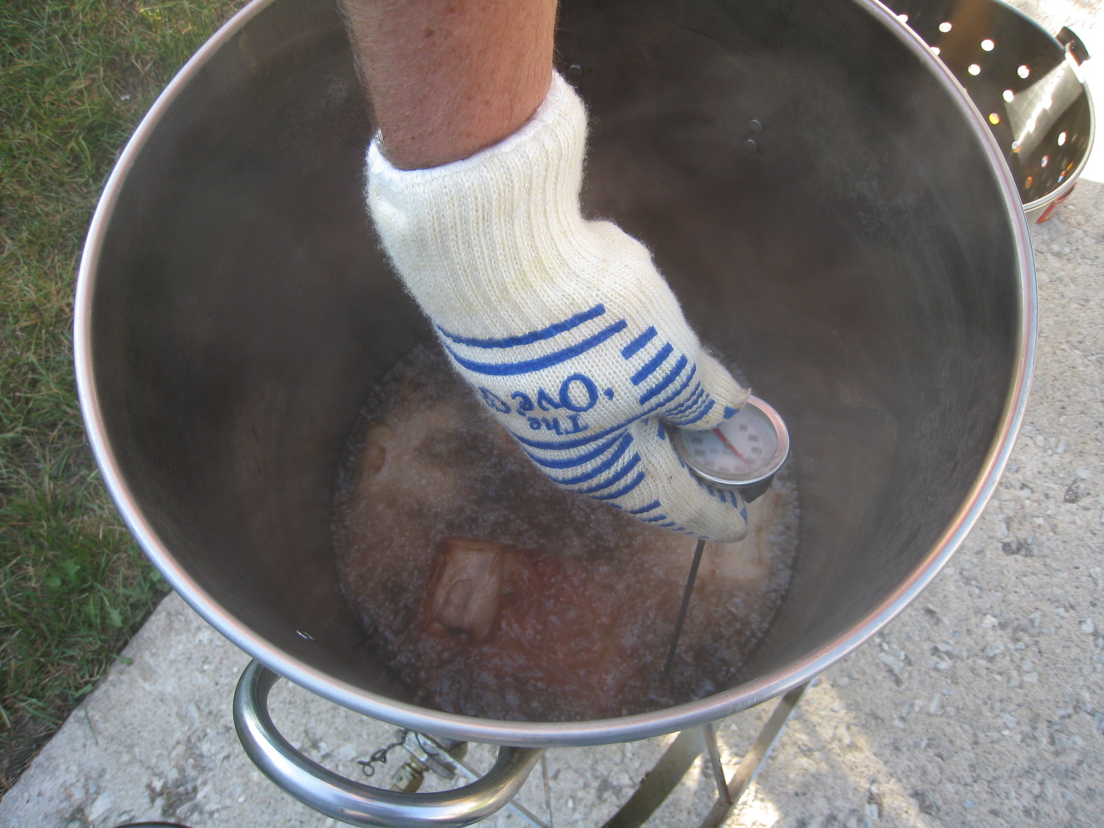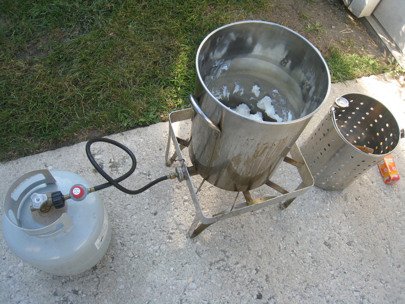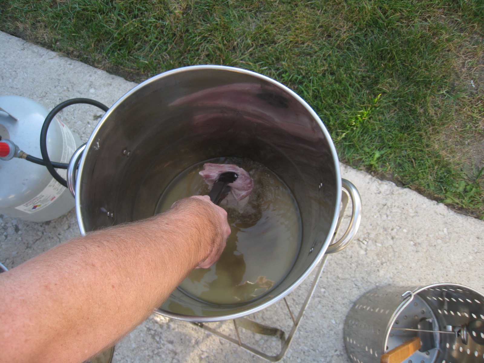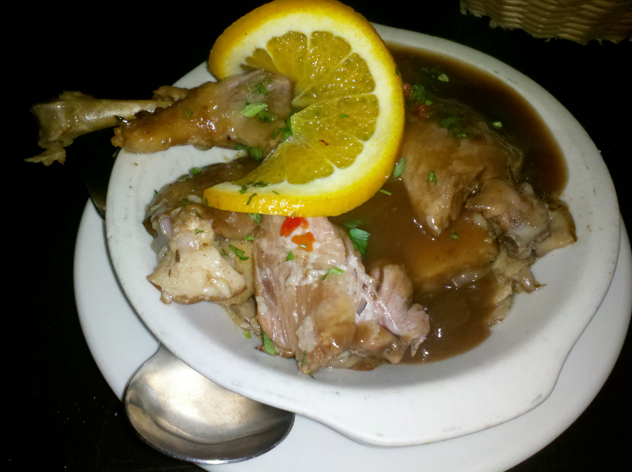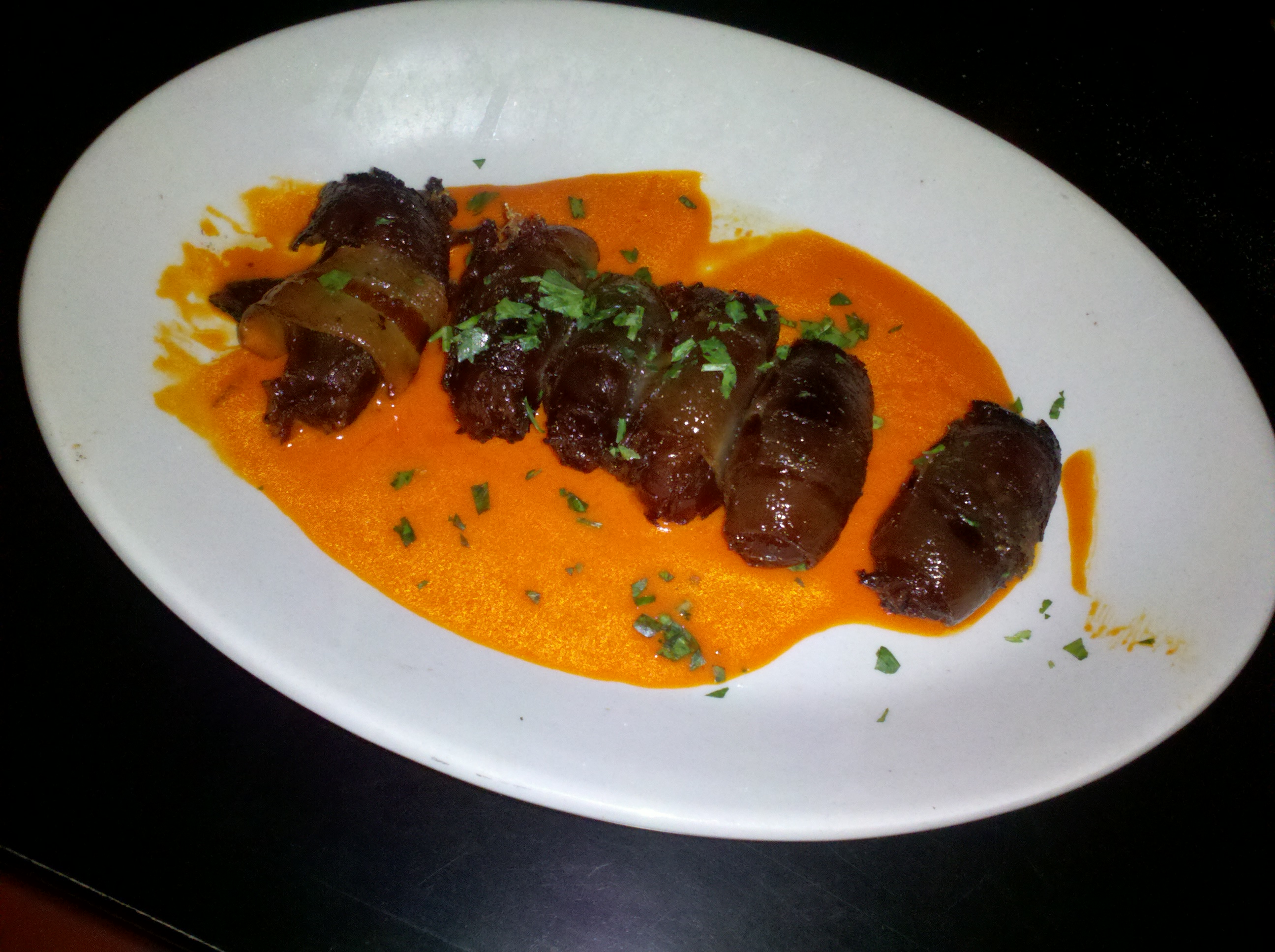 In a sauce pan, I threw all of the ingredients together and simmered them over medium-high heat for about 15 minutes, until everything was soft but not mushy. I let it cool down and then pureed it in my little blender. I set about 5 tablespoons aside and then salted and peppered the rest and let that sit aside ready to reheat just before serving.