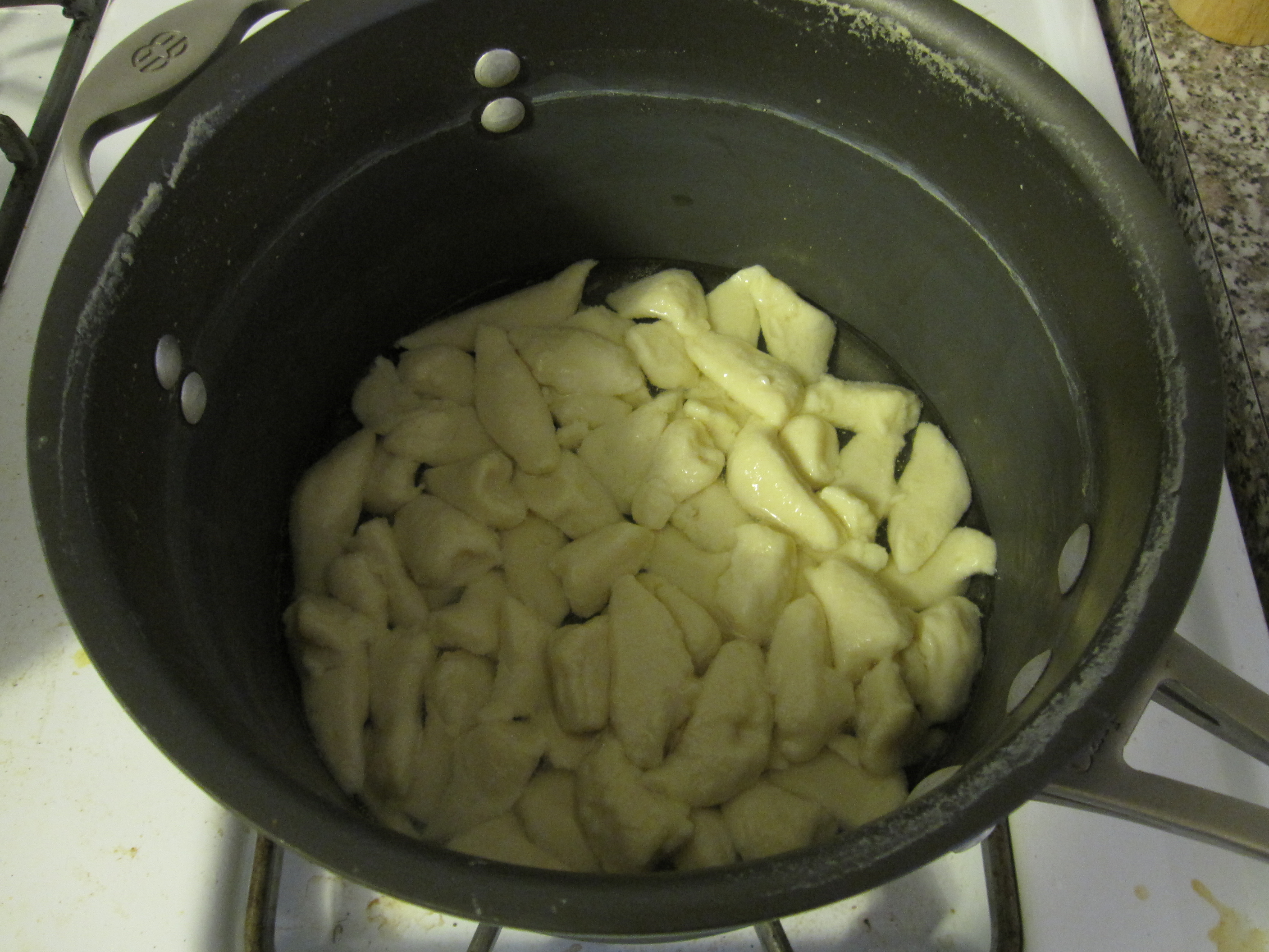 In my soup pan I poured in about 4 cups of water and added everything except for the cabbage, bean sprouts, and enoki. I brought it up to a boil and then covered it, lowered the heat to medium-low, and let it simmer for about 15 minutes. Then I added the rest of the ingredients and let it simmer for another 5 minutes. That’s all she wrote for the soup.