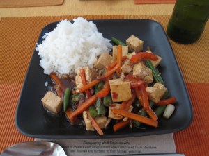 For the tofu “bulgolgi” I used 3 tablespoons of soy sauce, 1/4 granny smith apple, 1/4 onion, 1 tablespoon sugar, juice from 1/2 lemon, 1 tablespoon of sesame seeds, 1/2 inch ginger, 2 garlic cloves, 2 green onions, and 1 packet of silken tofu.