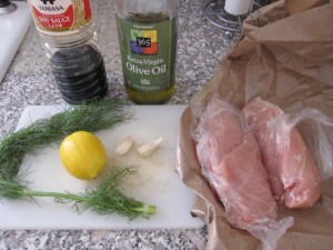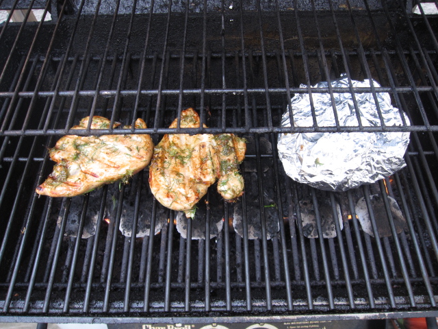 The other pieces of chicken we got were neck meat, 2 parts of the heart (heart skin and heart meat), meat that was dangling off a piece of cartilage (I think the breastplate), and skin. We also had a few pieces of okra to grill.