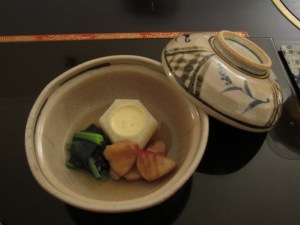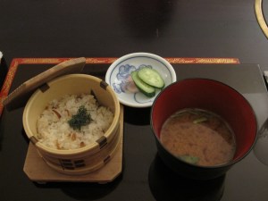 Next to the jubako was a plate with some grilled red snapper. I’m always disappointed when I order red snapper in Chicago. I’m never disappointed with I eat it here in Japan. Tamiko got the skin nice and crisp while keeping the flesh moist and juicy. Extremely fresh fish.