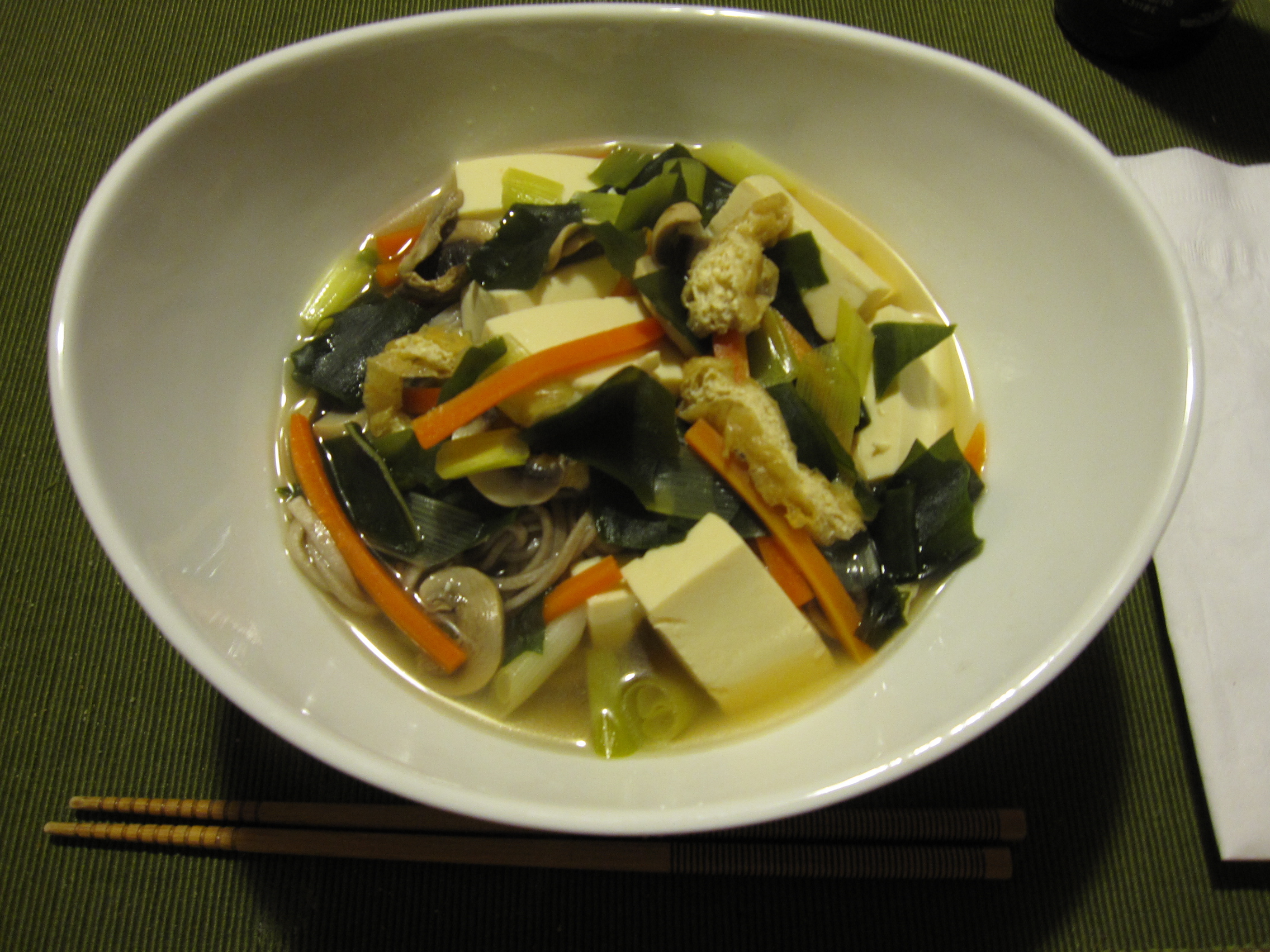 In this box there was some simple steamed pea pods, shiitake simmered in shoyu (Japanese soy sauce), boiled satoimo potatoes, simmered lotus root, simmered carrots, and koya tofu (freeze-dried tofu, something I’ve never eaten before but really like the texture).