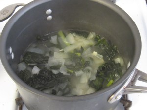 I simply threw it all into a pot and let it simmer for about 20 minutes. Before serving I removed the thyme and seasoned with salt and pepper.