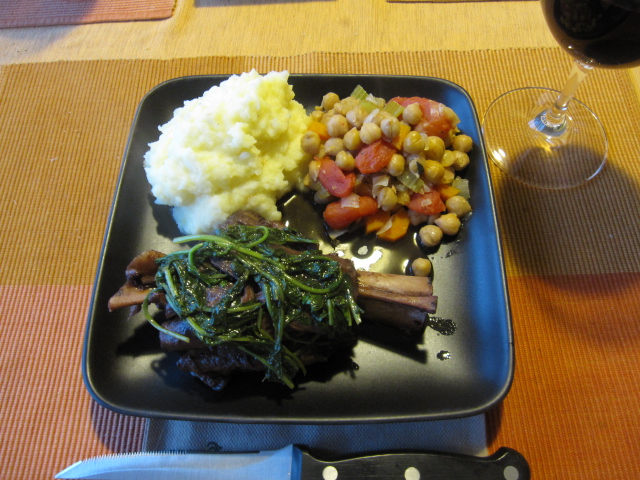 I have to say, even though this is a time-consuming recipe, it’s absolutely delicious! The meat was extremely tender and flavorful. While eating this Yuki commented that I could charge $40 for this dish. Not sure about that, but it’s definately a $28 dollar dish, at least better than most lamb you get at restaurants. Well worth the effort for a special occasion.