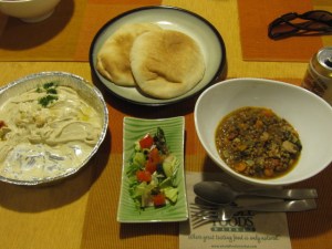 Here’s our tabletop grill in full effect. I didn’t get a pic of it, but we each had a dish with three different dipping options for the grilled meat. There as a ponzu-based sauce that was my favorite, some sea salt, and some rice vinegar.