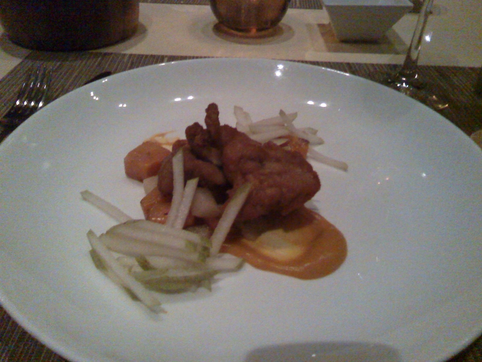 First up was the Calamares A La Plancha. The squid was perfectly cooked…soft and tender, yet crispy at the same time. A little too much salt, but not so much that it killed the dish.