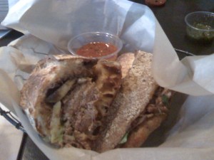 I took the lettuce, smeared some miso on it, topped it with the beef, and chowed down! Oiishii!!! No offense to Koreans, but the quality of the meat is so much better than anything I’ve had at a Korean BBQ. Tender and juicy, the way a good cow should be. I do have a groupon for Gyu-Kaku that I can’t wait to use so that I can eat other cuts of beef along with different animals, both with legs and with gills. Oh, some veggies too. Yuki told me that their ramen was pretty good too.