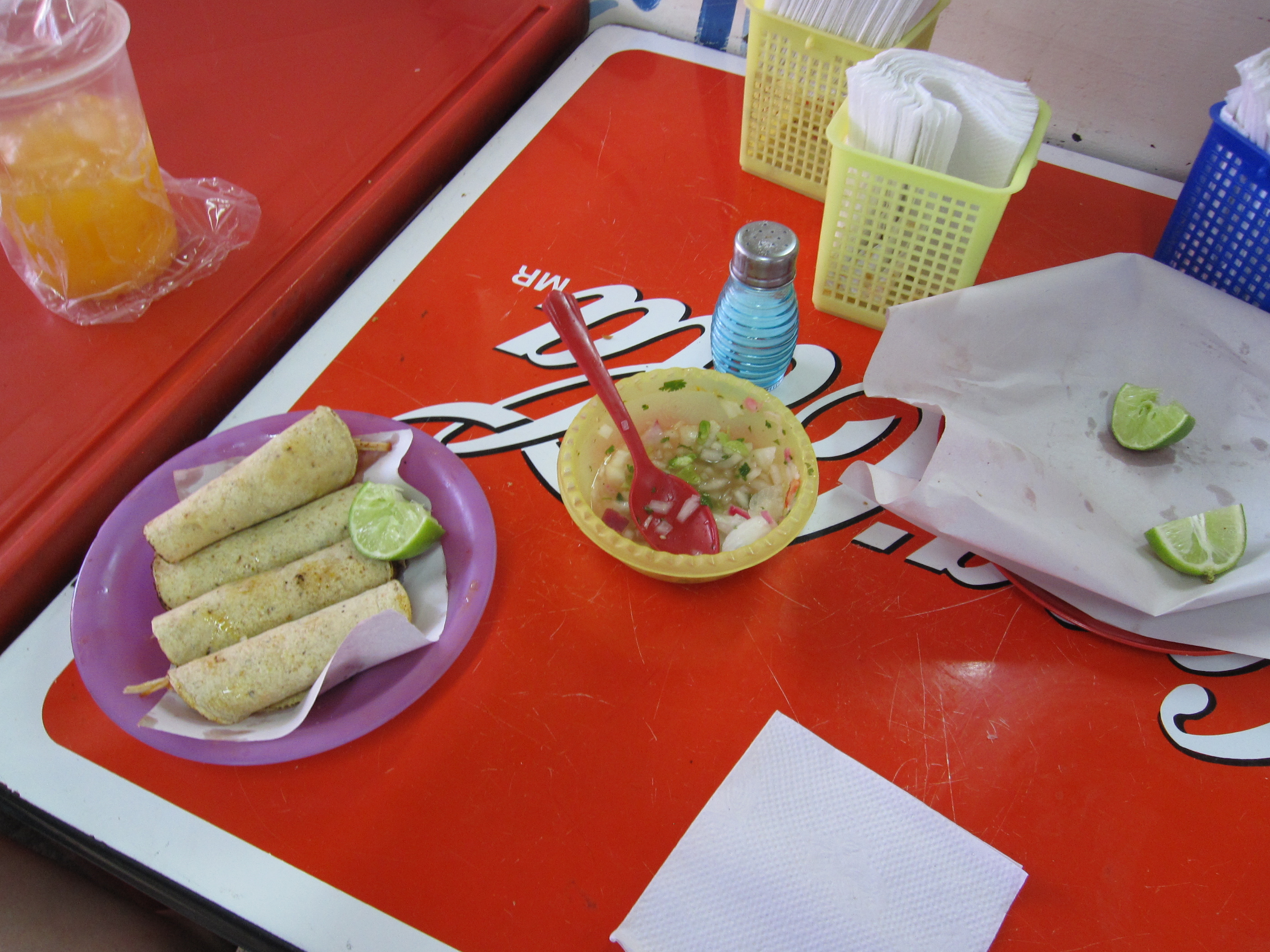 What better way to spend Thanksgiving weekend than to get away from cold Chicago and bask in the Mexican sun? Well, I was with my obnoxious family that took 2 hours to decide, read that argue about, what to do for every meal, so maybe it could be better? Actually, I’d have it no other way. A little aggravation is good for the soul. One thing that was easily agreed upon was heading to the San Benito Market in Merida (where my mom lives) with my two brothers. If you read my post on the market from the last time I was in Merida, you’ll see that I’m a big fan of the various tacos and other food items one can gorge themselves on. One thing I didn’t try on my past trip was any of the seafood. So, my brothers and I set off to find out if it’s as good as the 4-legged creatures one can devour there. We did start off with a couple of tacos each for an appetizer.