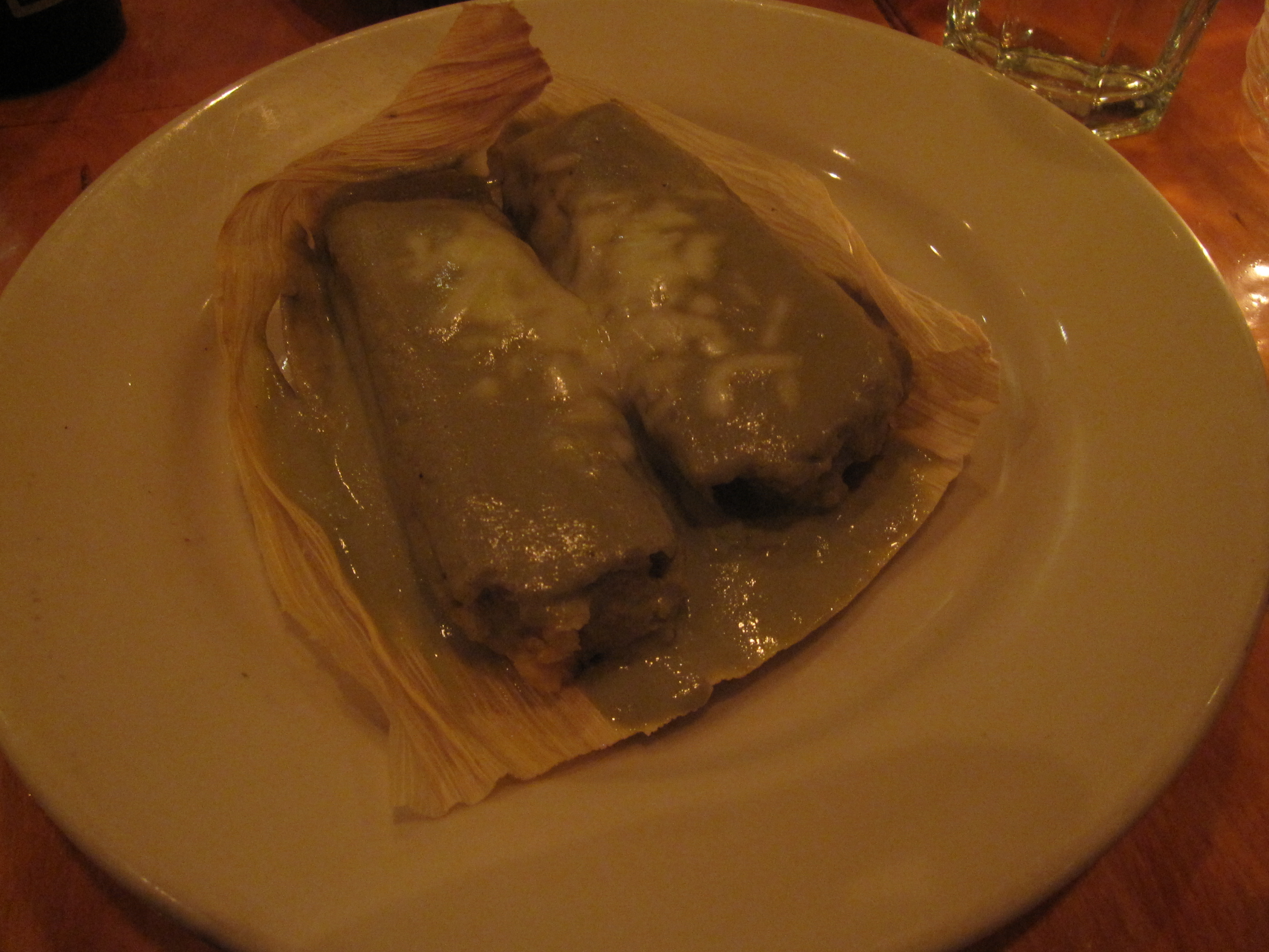 Of course, we started with the tamales. Chicken filled and topped with a green sauce and some melted cheese. They put a lot of whole kernels in their masa which gave a little bit more sweetness to the dish. It took a couple of bites to get used to it, but after those couple of bites I found that I really enjoyed them. With two tamales per order we got two orders so that we each got our own.