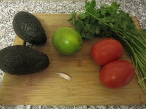 I also made some guacamole. I was going to use 2 avocados, but when I sliced the 2nd one open it was absolutely disgusting! That’s the one problem I have with avocados, they’re such a crapshoot. I did get one good though and that was enough for our dinner. Since I only had one good one I only used 1 plum tomato. I de-seeded it and chopped it up. I mixed the tomato and avocado with the juice from 1/2 lime, 1 small garlic clove minced, a pinch of salt and pepper, and a handful of chopped cilantro.