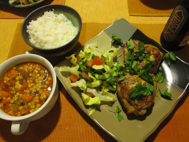 I served these carnitas with cilantro, white rice, steamed bok choy, and sautéed chinese eggplant, green onion, and yellow bell pepper. Avocado would’ve been pretty good with them too. Topping them with diced tomato and onion wouldn’t be bad either.